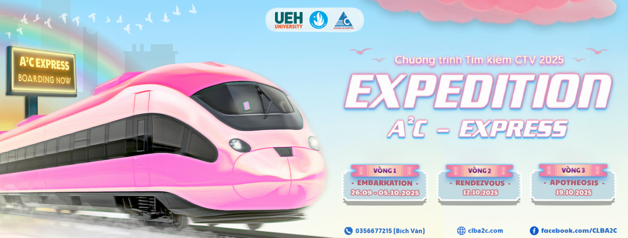Cùng A²C khởi hành trên chuyến tàu tốc hành đến những miền đất mới! Trải qua 26 năm phát triển, CLB Kế toán - Kiểm toán A²C đã khẳng định bản lĩnh và tạo dựng dấu ấn riêng không thể phai mờ. Giờ đây, con tàu A²C lại tiếp tục lăn bánh trên hành trình mới mang tên EXPEDITION 2025 - nơi chào đón những hành khách trẻ trung, nhiệt huyết và sẵn sàng đồng hành để viết tiếp câu chuyện tự hào cùng A²C. EXPEDITION 2025 không chỉ là hành trình tìm kiếm Cộng tác viên, mà còn là cơ hội để các bạn bước lên những toa tàu của sự nhiệt huyết, sáng tạo và khát vọng bứt phá đang không ngừng lao về phía trước. Trên mỗi chặng đường này, bạn sẽ không bao giờ đơn độc - bởi A²C luôn có những người đồng hành sát cánh, cùng vượt qua thử thách và hướng tới những chân trời mới. Mỗi khoảnh khắc tại A²C sẽ là một trải nghiệm đáng nhớ, mỗi thử thách là cơ hội để trưởng thành, và mỗi bước đi sẽ để lại dấu ấn khó quên. Hãy để EXPEDITION trở thành một phần ký ức của riêng bạn, nơi mà bạn có thể học hỏi, trải nghiệm và trưởng thành trên hành trình đầy sắc màu cùng A²C!